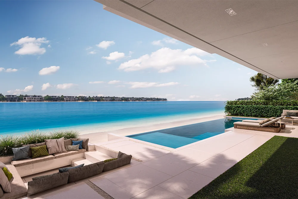 Located in the heart of Palm Jebel Ali, Villa Bluejay by Nakheel offers an unparalleled living experience where luxury and serenity merge. This exclusive collection features 6-bedroom villas that redefine modern living, combining contemporary architecture with natural tranquility. With its angular designs and bold geometric lines, the villa exemplifies architectural excellence. Floor-to-ceiling glass walls bring in abundant natural light, showcasing meticulously designed spaces that foster a sense of calm and inspiration.
